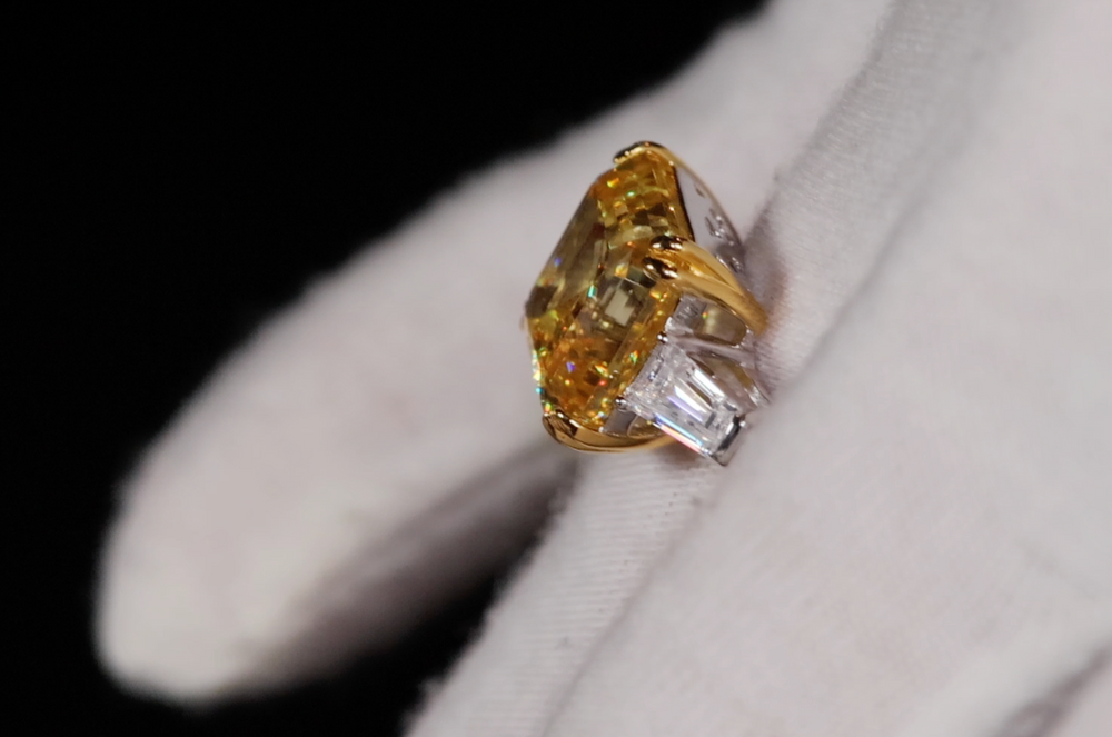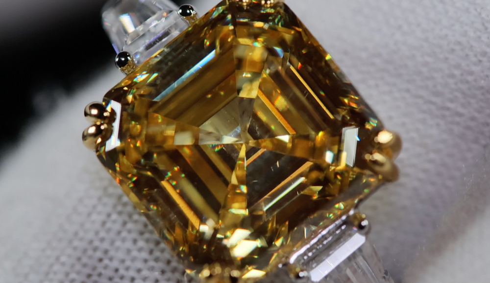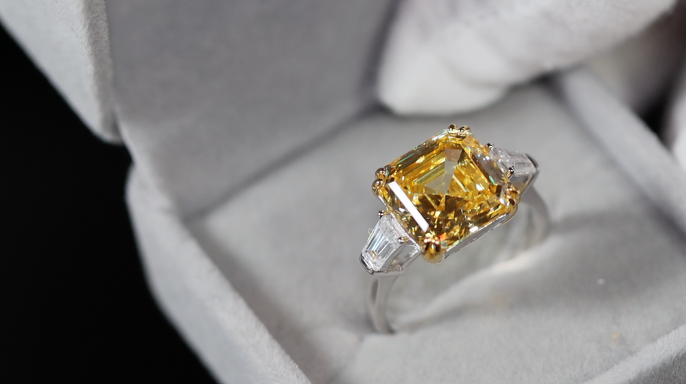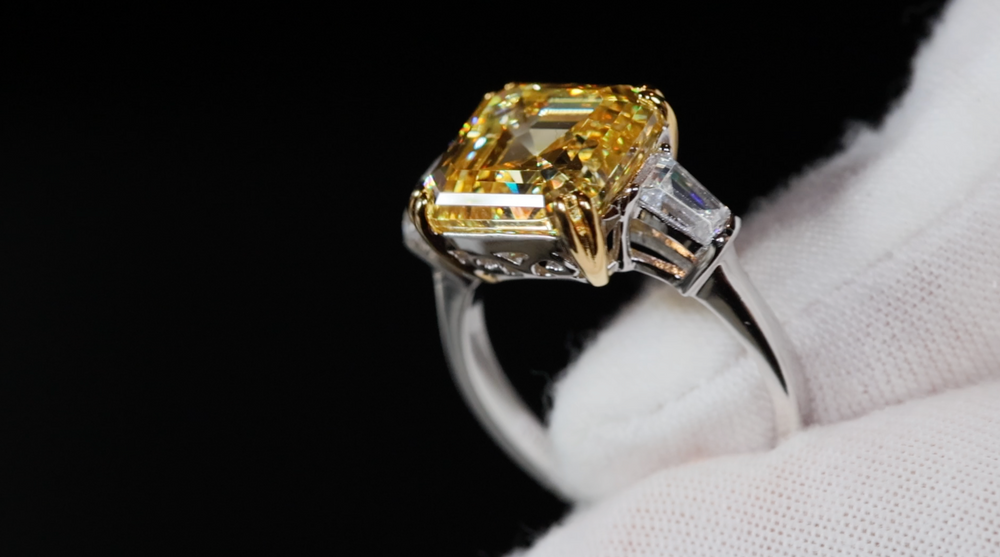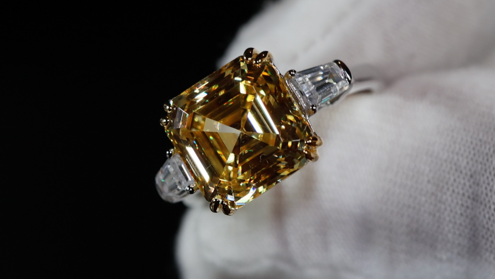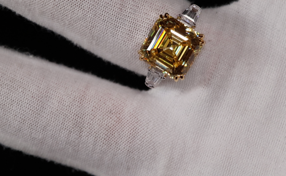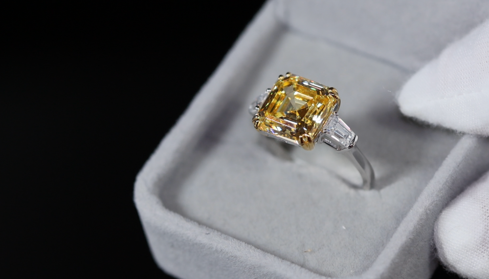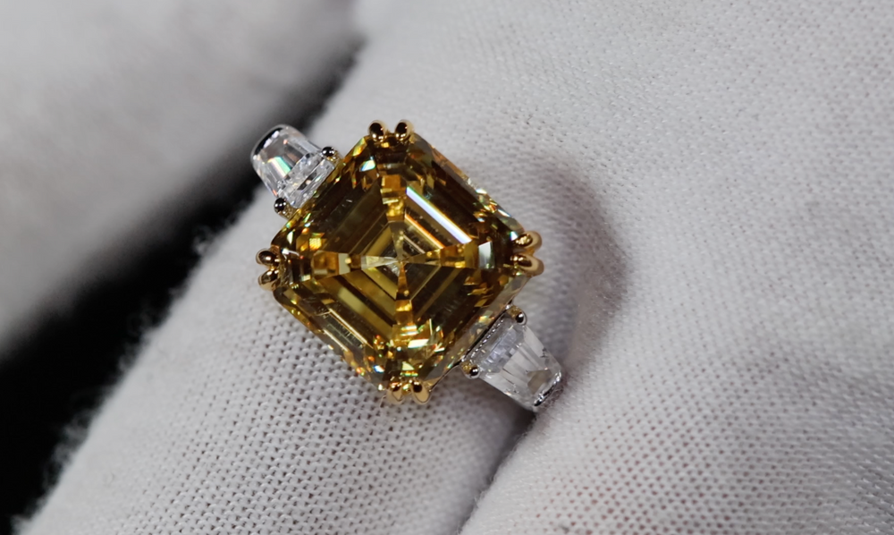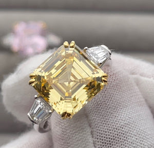 10.00ct Yellow Diamond Ring | Yellow Asscher Cut Diamond Wedding Ring