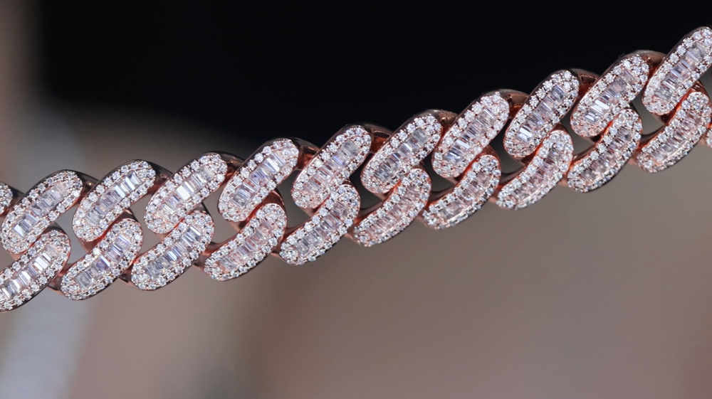 Rose Gold Cuban Link Chain | Mens Baguette Chain | Hip Hop Chain