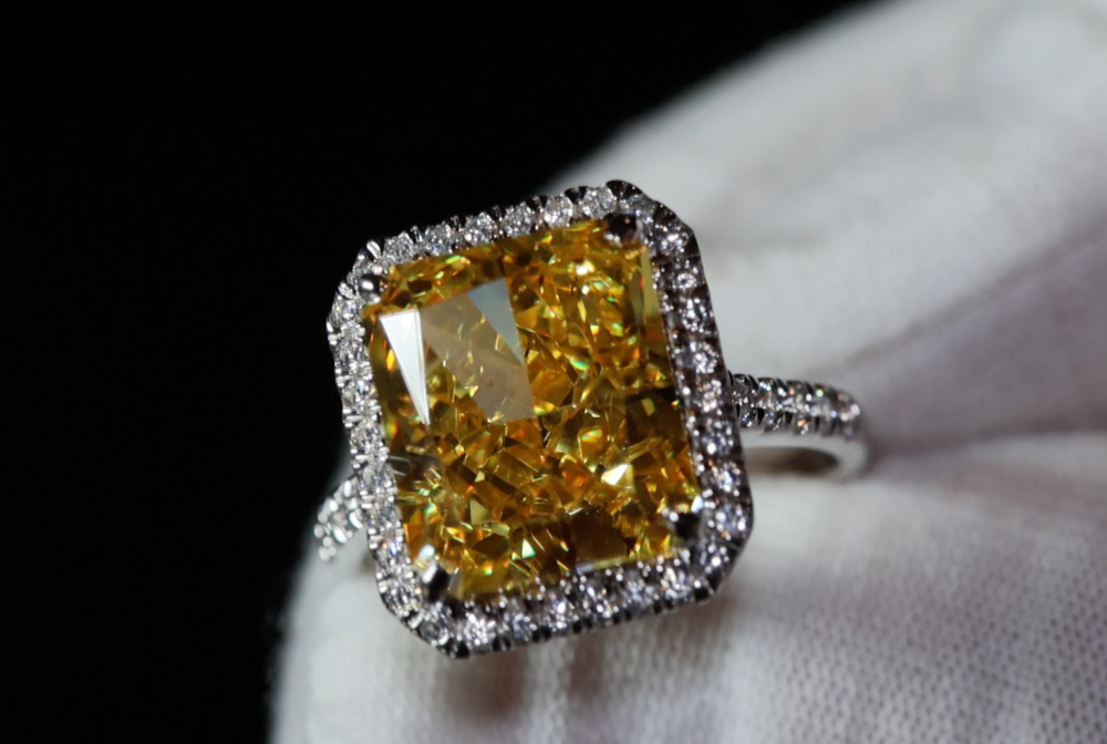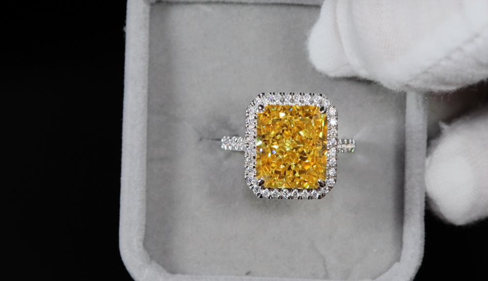 10.00 Carat Yellow Diamond Ring | Yellow Radiant Cut Diamond Engagement Ring