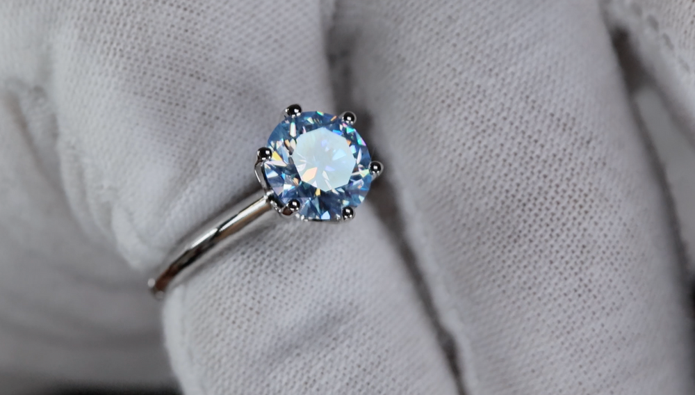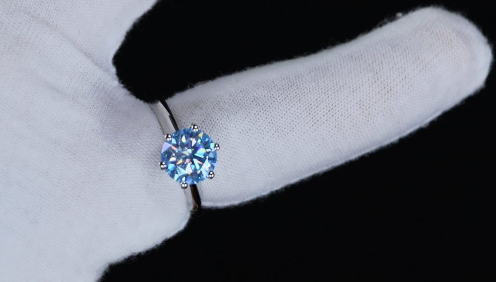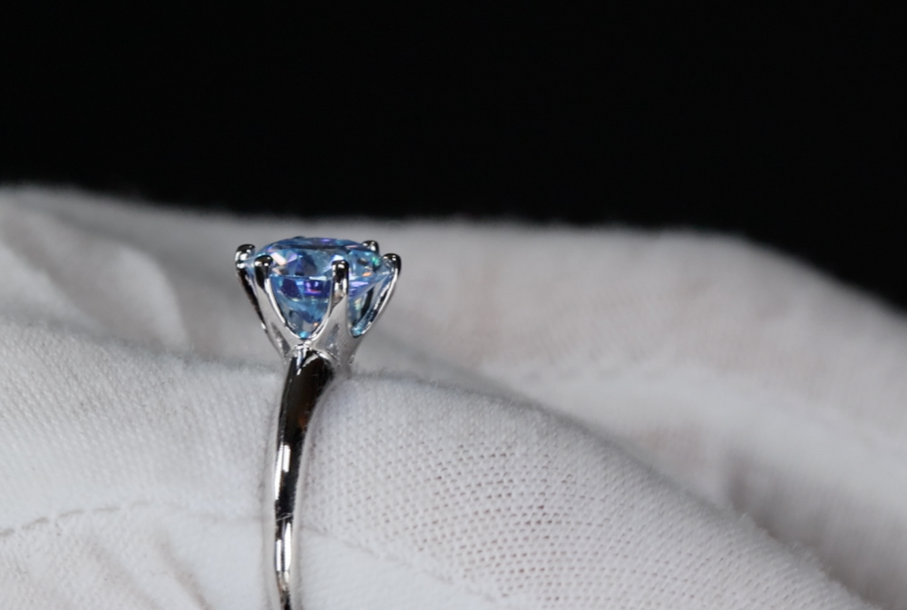 3.0ct Blue Moissanite Diamond Ring | Blue Moissanite Diamond Ring