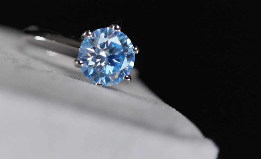 Blue Moissanite Diamond Ring | Blue Diamond Ring