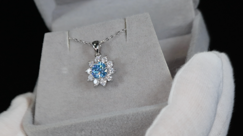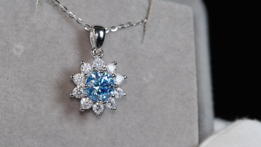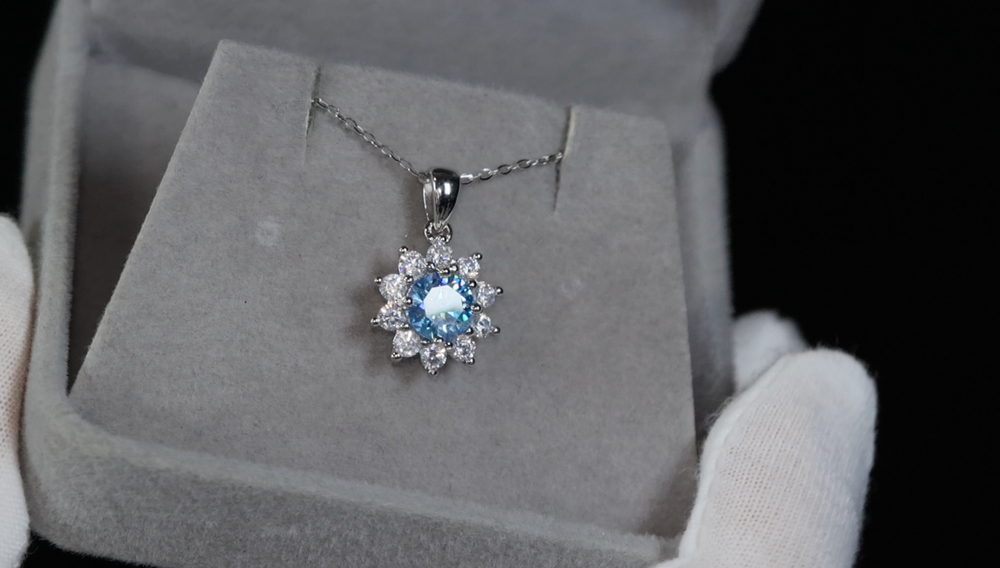 Blue Moissanite Pendant | Blue Diamond Pendant | Snowflake Pendant