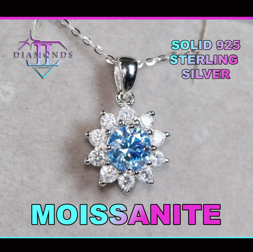 Blue Moissanite Pendant | Womens Moissanite Diamond Pendant | Blue Diamond Pendant