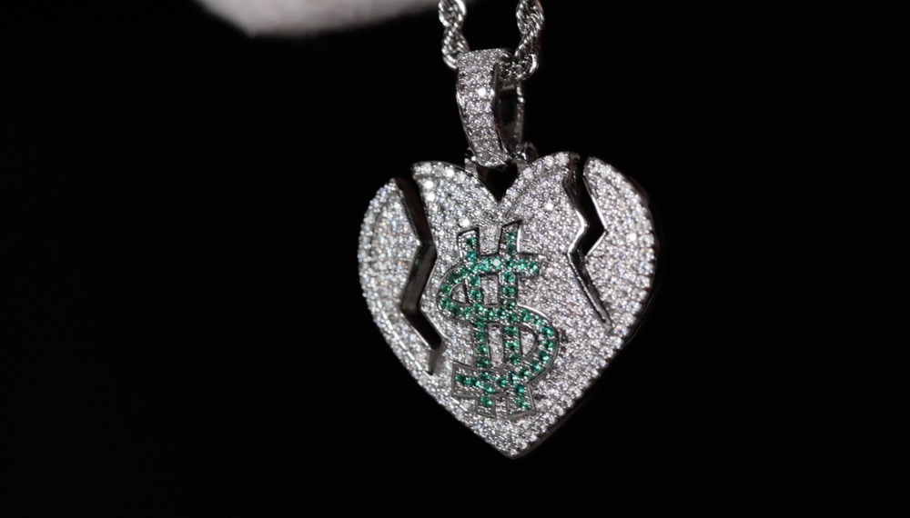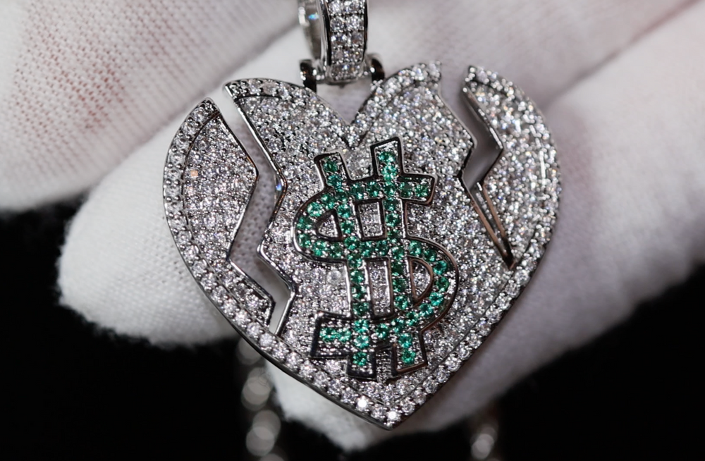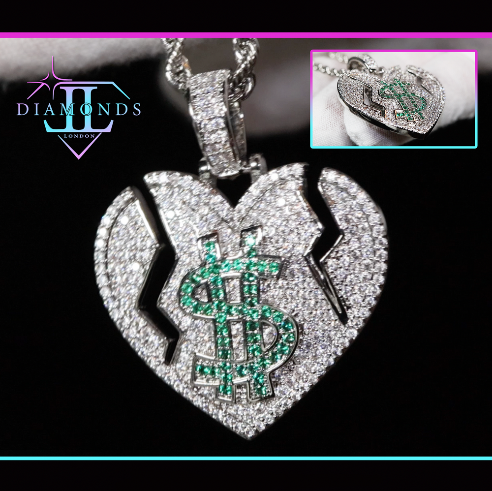 Heart Pendant | Iced Out Heart Pendant | Broken Heart Pendant | Dollar Sign Pendant