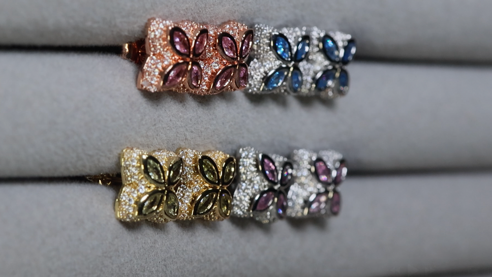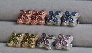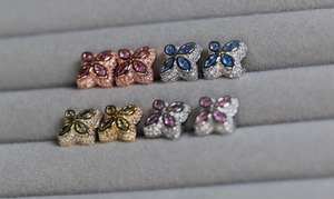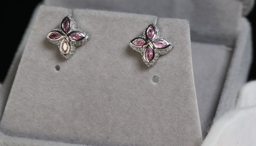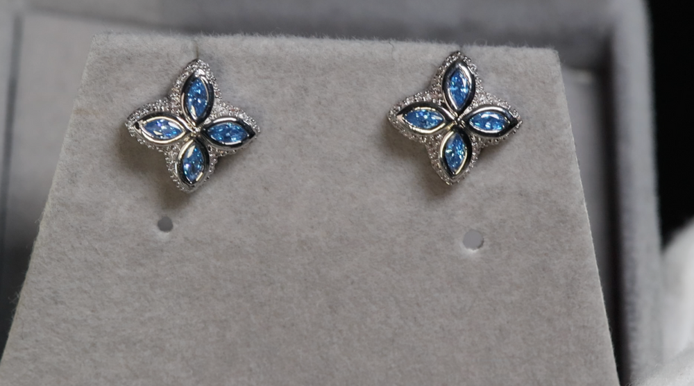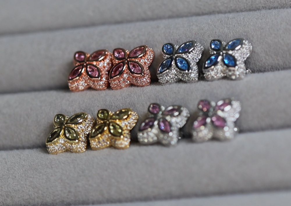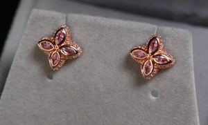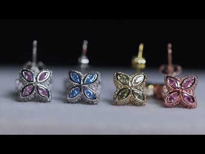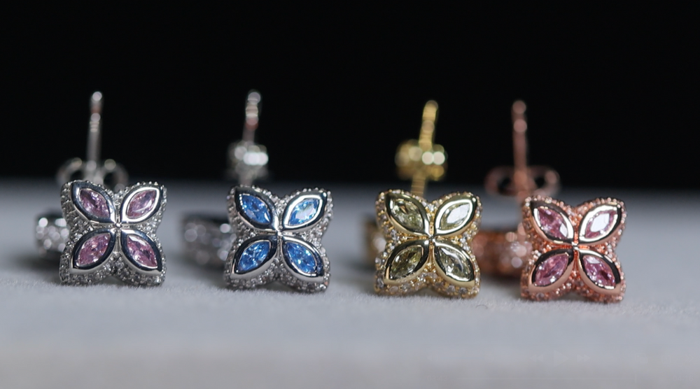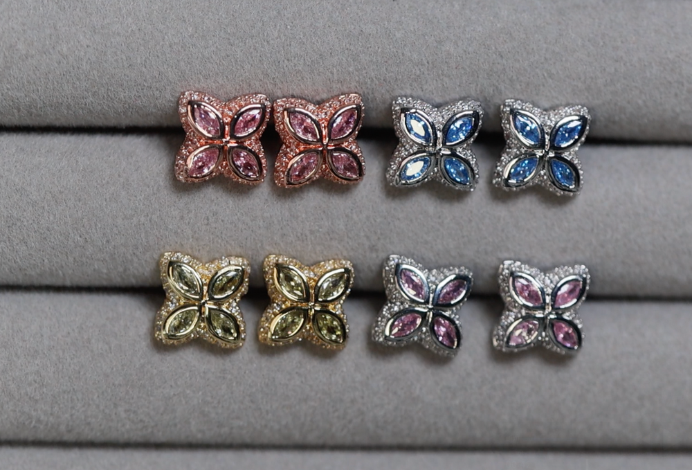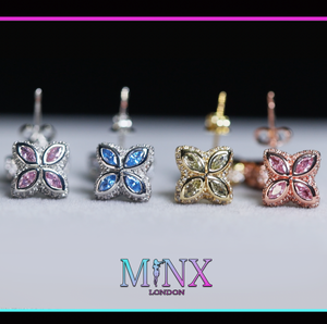 Pink Diamond Clover Earrings | Blue Diamond Clover Ear Studs | Rose Gold Clover Earrings | Gold Clover Earrings | Silver Clover Earrings