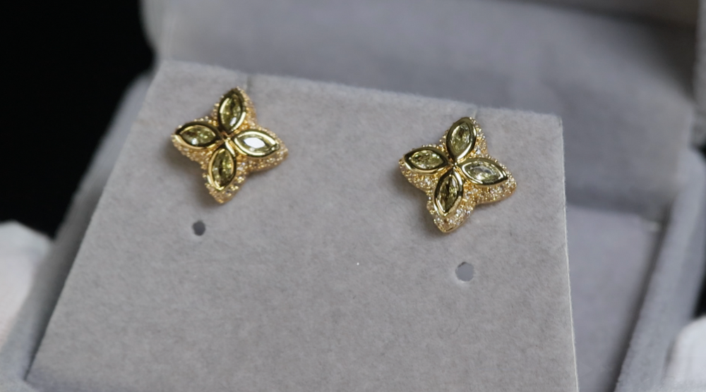 Clover Diamond Earrings | Diamond Clover Ear Studs | Iced Out Earrings