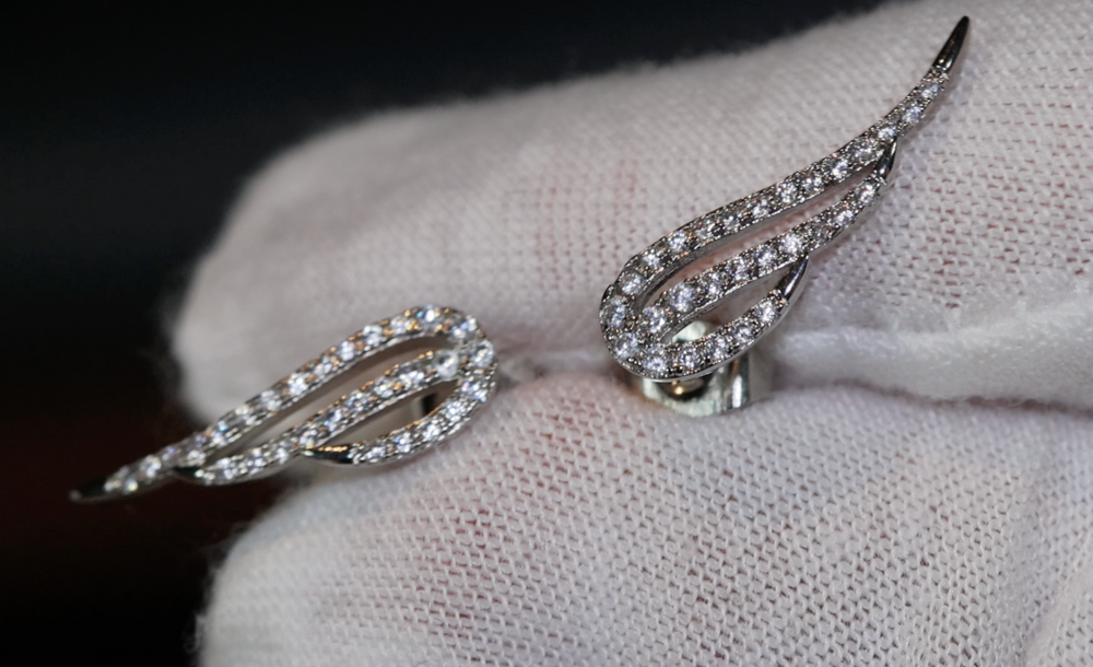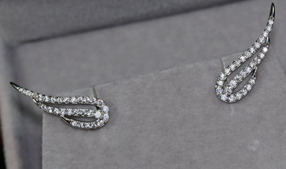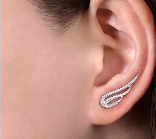 Diamond Wing Earrings | Wing Earrings | Feather Earrings | Womens Earrings | Womens Diamond Earrings | Angel Earrings | Cuff Earrings