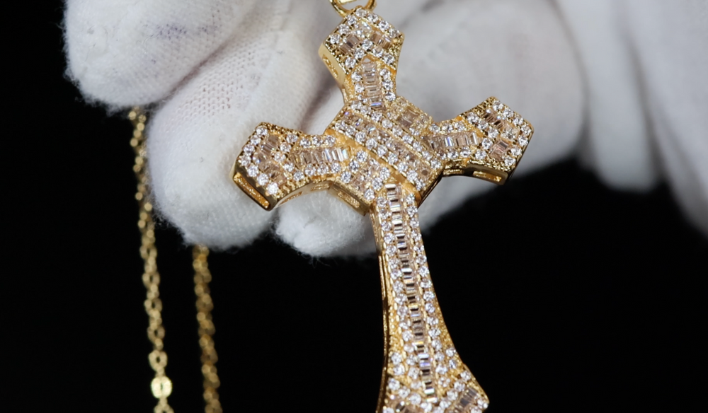 Gold Cross Pendant and Necklace | Cross Chain for Men | Iced Out Cross Pendant