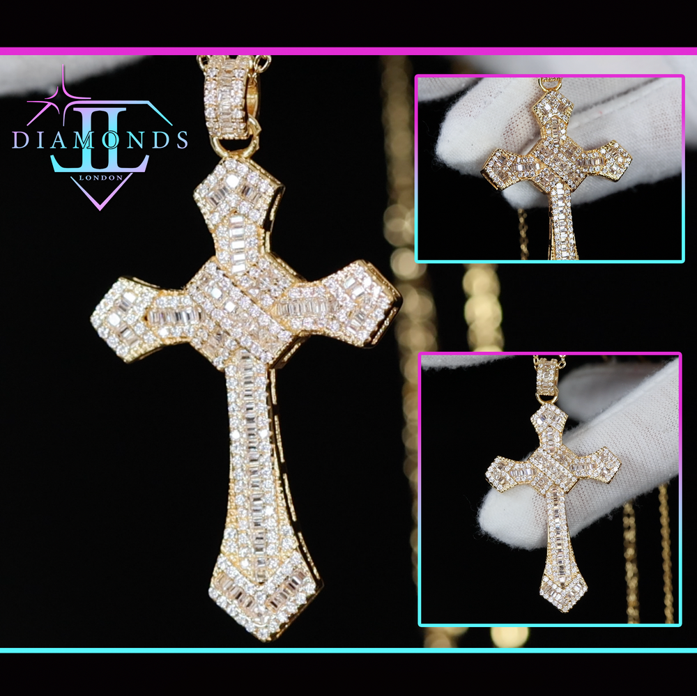 Gold Diamond Cross Pendant | Gold Baguette Diamond Cross Pendant