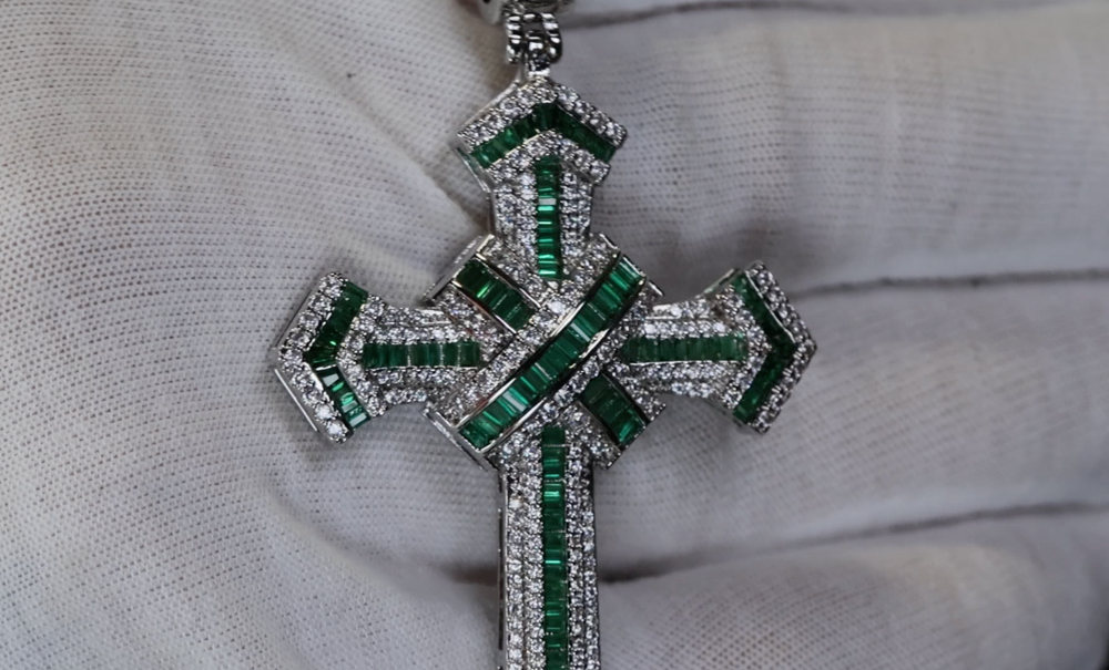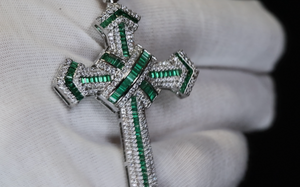 Big Green Diamond Cross Pendant | Green Diamond Cross | Iced Out Cross | Mens Big Cross Pendant