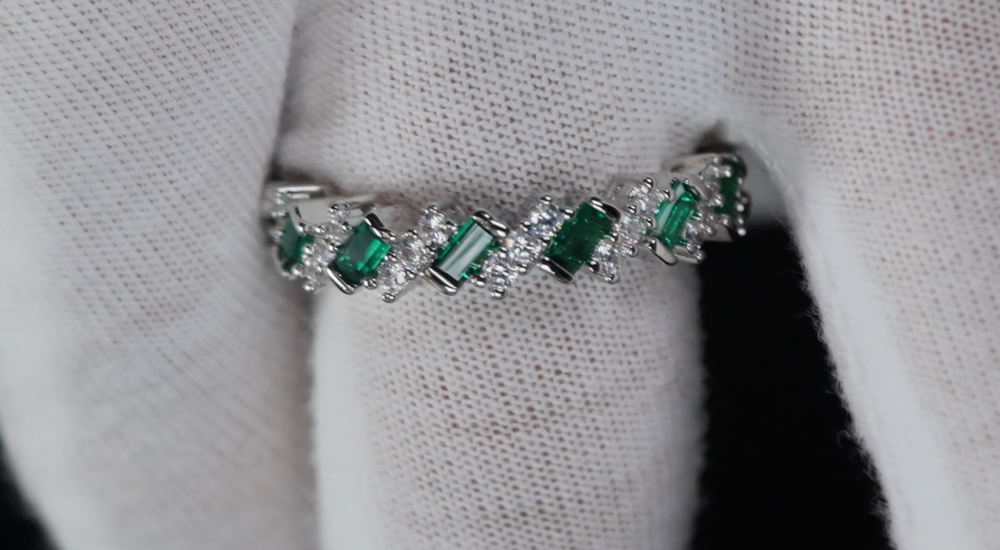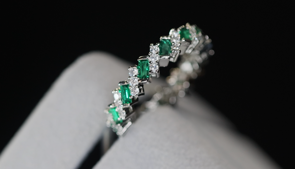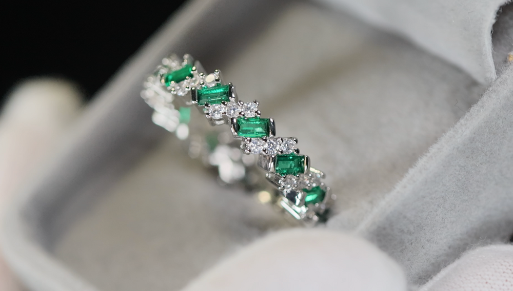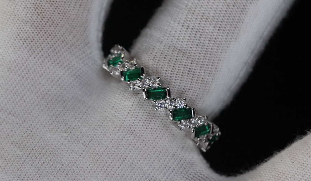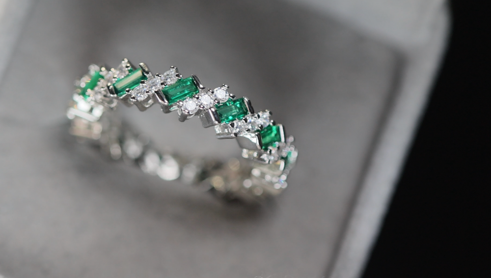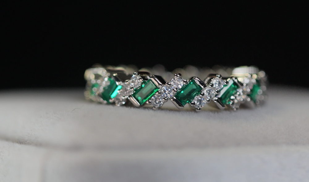 Eternity Ring | Emerald Green Diamond Ring | Green Diamond Ring