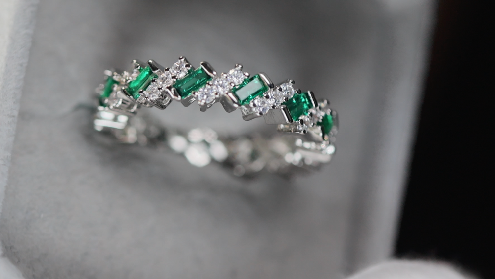 Baguette Ring | Womens Eternity Ring | Green Baguette Diamond Ring