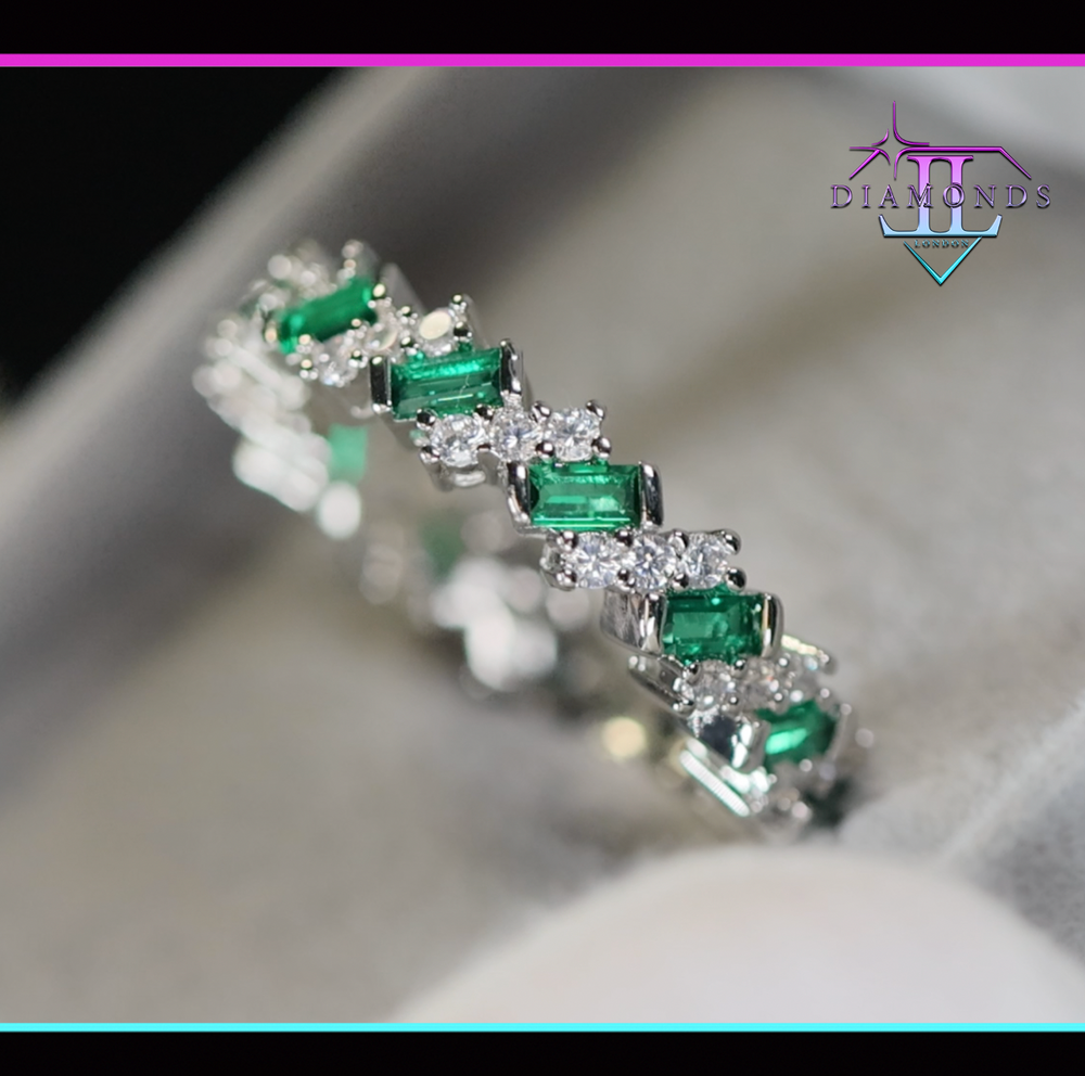 Eternity Ring | Green Diamond Ring | Green Diamond Engagement Rings | Green Emerald Ring | Baguette Ring | Womens Eternity Ring | Green Baguette Diamond Ring