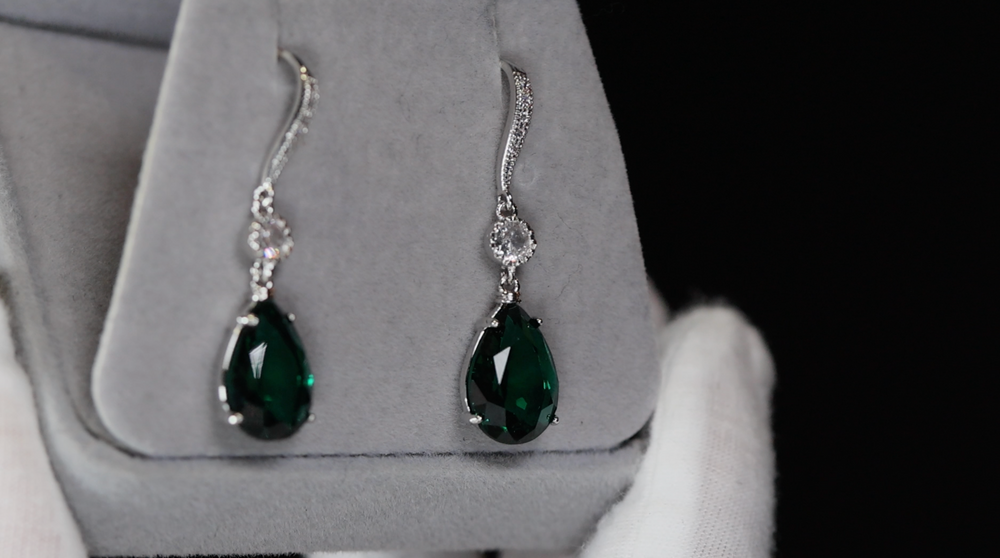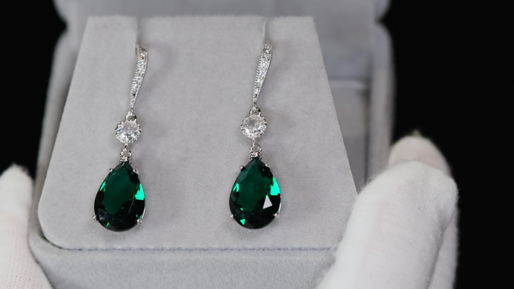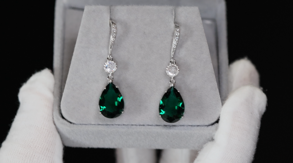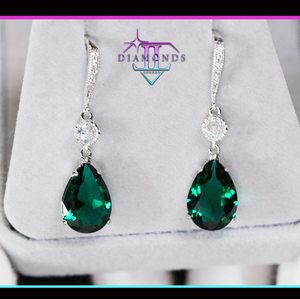 Green Diamond Earrings | Emerald Green Earrings | Green Pear Cut Earrings
