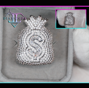 Mens Hip Hop Ring | Iced Out Rings | Money Bag Diamond Ring | Mens Iced Out Ring