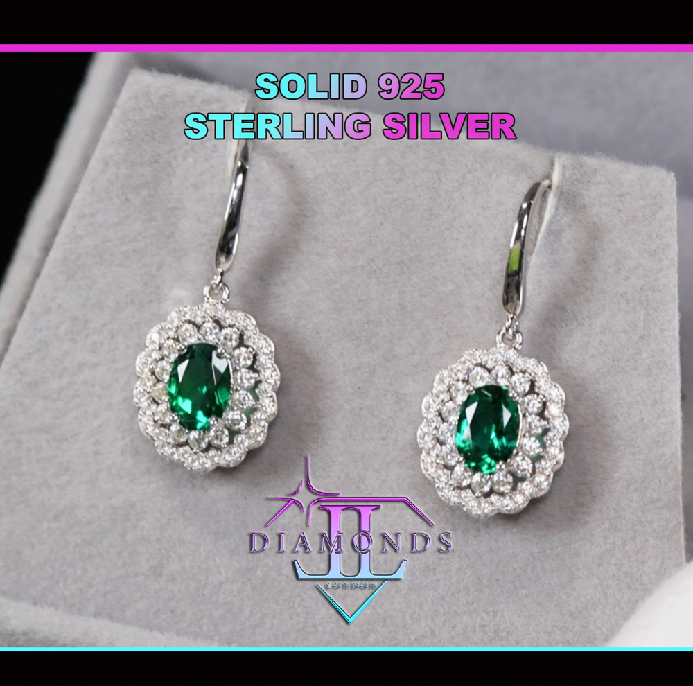 Lab Grown Colombian Emerald Earrings | Emerald Earrings | Colombian Emerald Earrings | Colombian Green Emerald Earrings | Green Emerald Oval Cut Earrings | Womens Green Emerald Earrings | Oval Cut Earrings | Green Lab Diamond Earrings | Solid 925 Sterling Silver Earrings