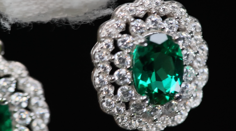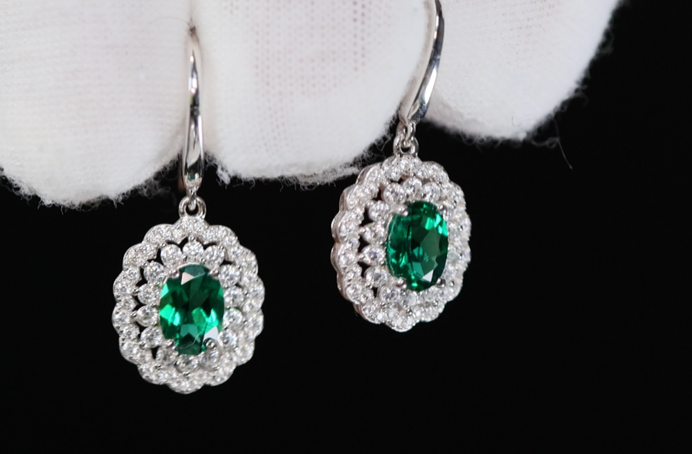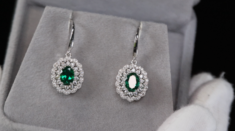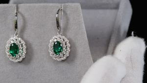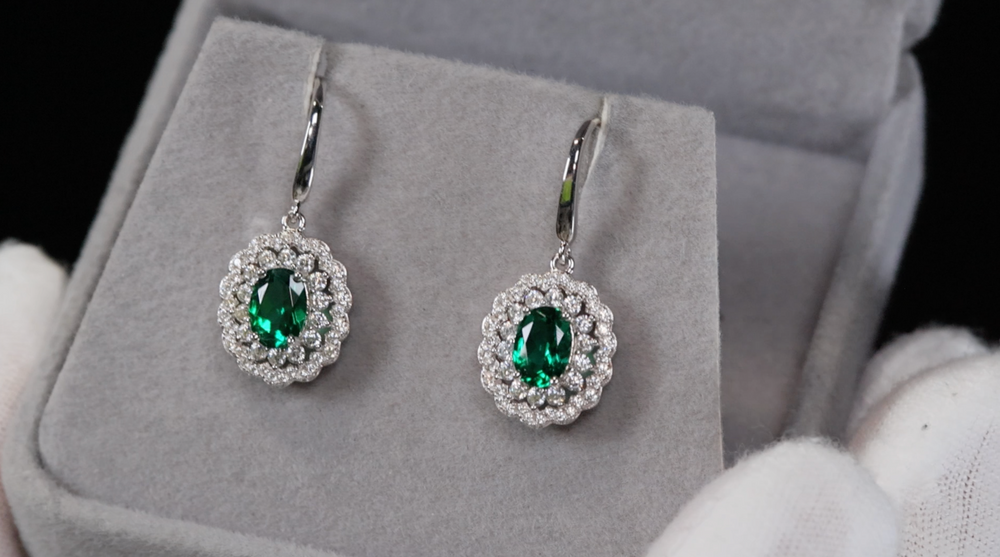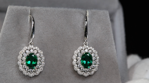 Lab Grown Colombian Emerald Earrings | Oval Cut Colombian Emerald Earrings
