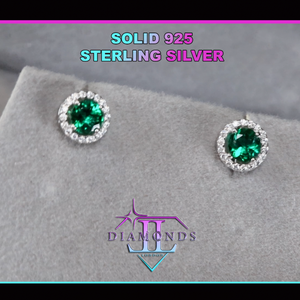 Lab Grown Colombian Emerald Ear Studs | Emerald Ear Studs | Colombian Emerald Ear Studs | Colombian Green Emerald Ear Studs | Mens Green Emerald Ear Studs | Womens Green Emerald Ear Studs | Round Cut Green Emerald Earrings | Green Lab Diamond Earrings | Solid 925 Sterling Silver Earrings | Mens Green Diamond Ear studs