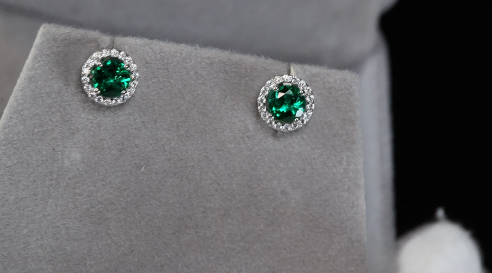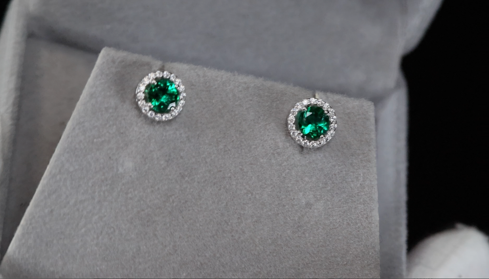 Lab Grown Emerald Ear Studs | Colombian Emerald Ear Studs
