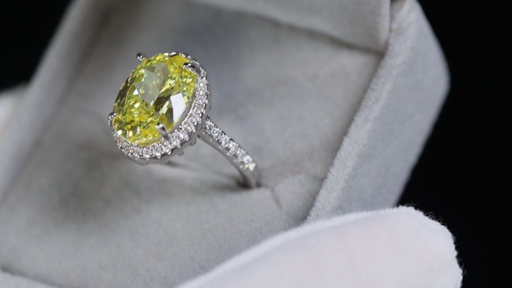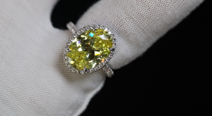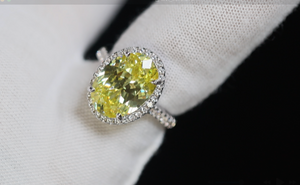 Lime Green Oval Diamond Ring | Green Oval Cut Diamond Ring