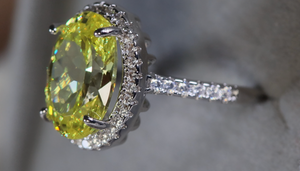 Hidden Halo Ring | Silver Oval Diamond Ring | Lime Green Diamond Ring