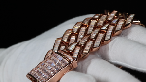 Mens Rose Gold Iced Out Cuban Link Chain | Rose Gold Baguette Diamond Cuban Link Chain