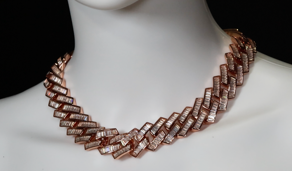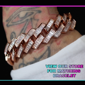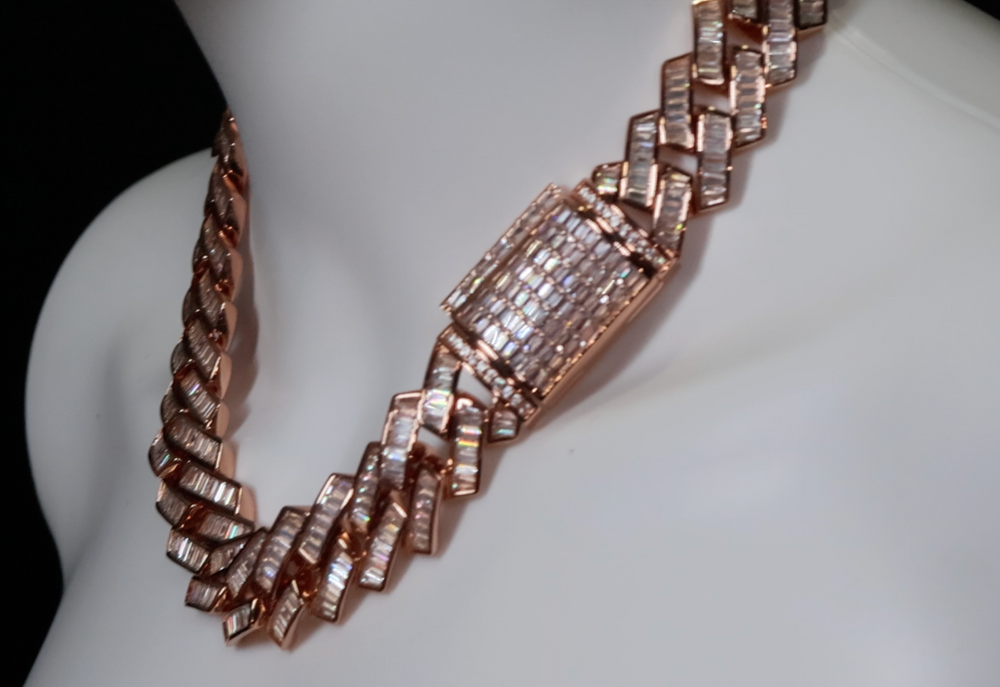 Mens Miami Cuban Link Chain | Mens Baguette Chain | Rose Gold Hip Hop Chain | Rose Gold Baguette Diamond Cuban Necklace