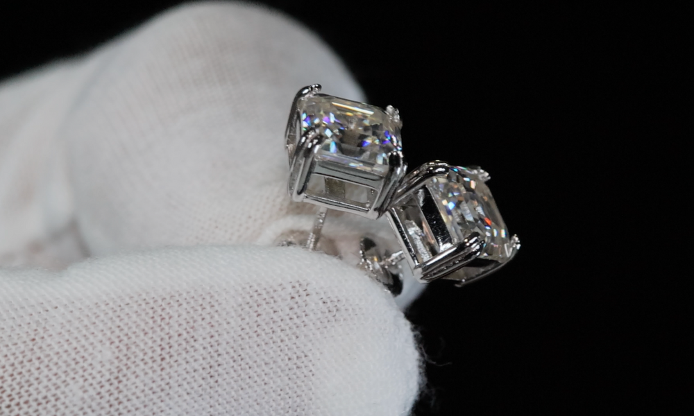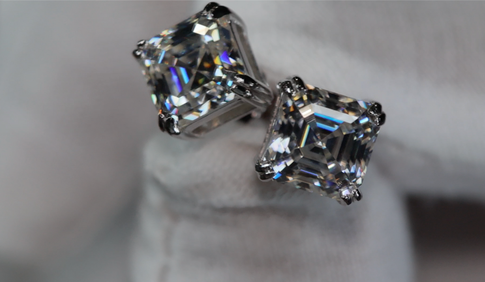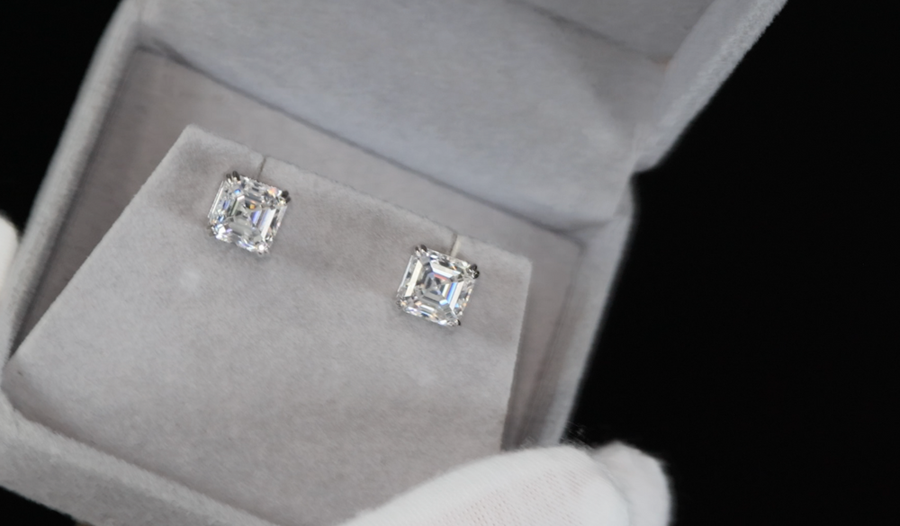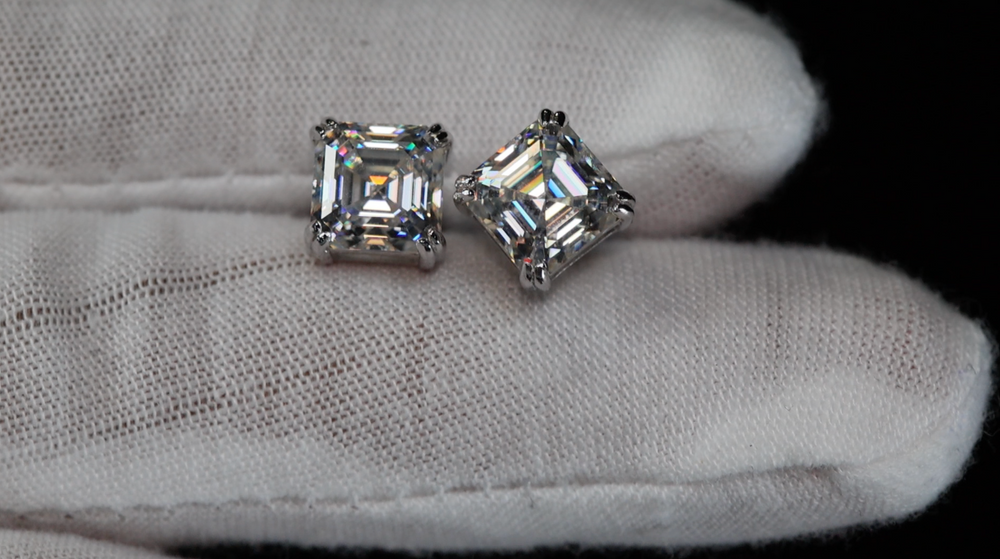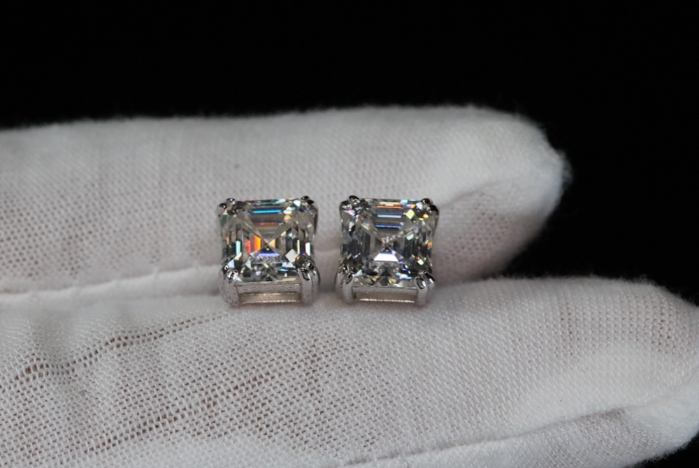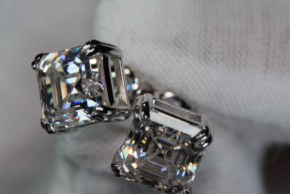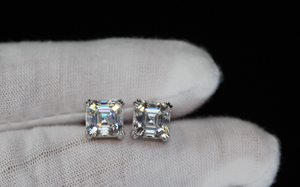 Asscher Cut Diamond Ear Studs | Moissanite Asscher Ear Studs