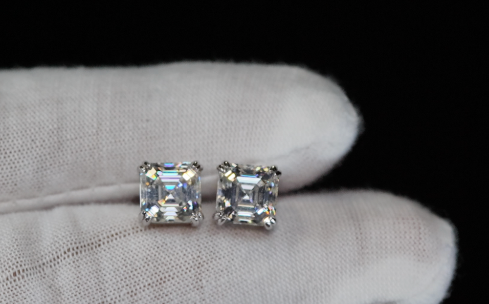 5.0ct Moissanite Asscher Cut Diamond Ear Studs | Moissanite Asscher Cut Diamond Ear Studs