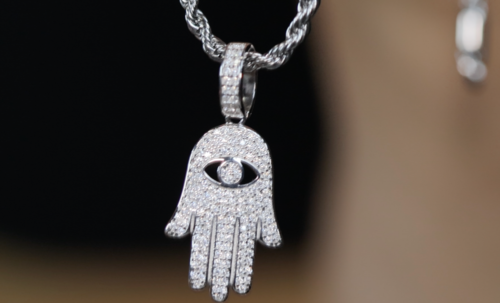 Iced Out Hamsa Pendant | Hamsa Pendant | Diamond Hand Pendant | Muslim Pendant