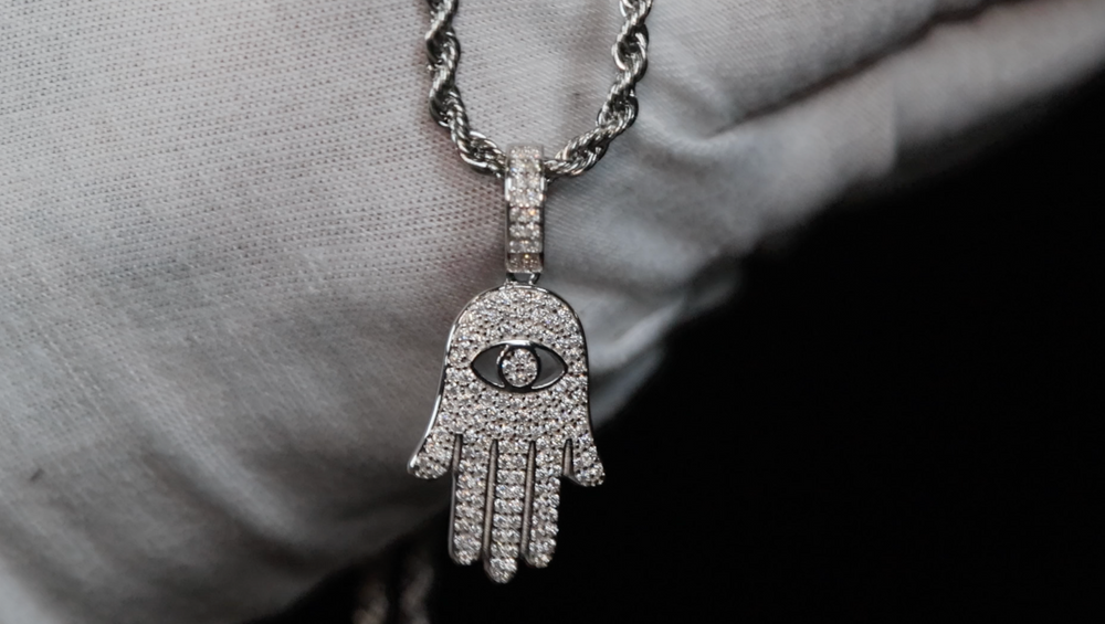 Moissanite Iced Out Hamsa Pendant | Moissanite Diamond Hand Pendant