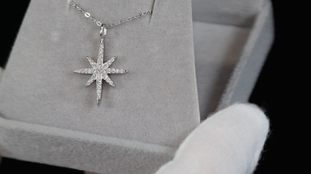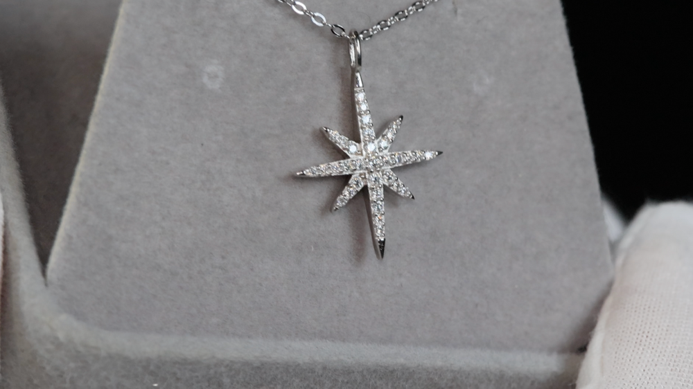 Womens Moissanite Diamond Pendant | Silver Star Pendant | Diamond Star Pendant
