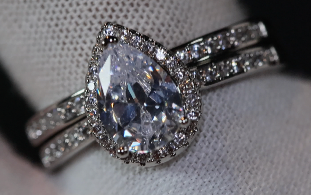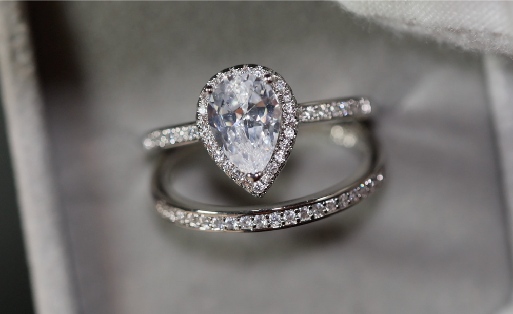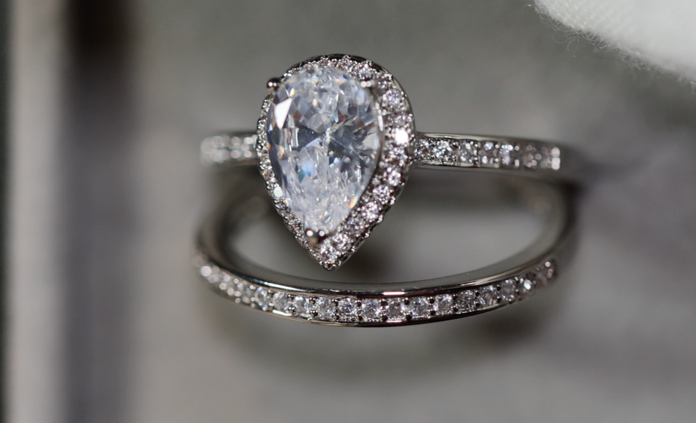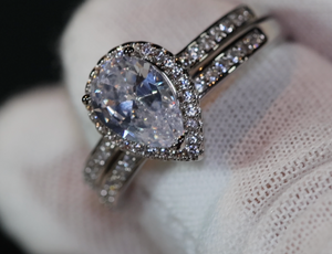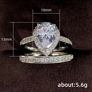 Engagement Ring Set | Womens Wedding Ring Set | Pear Cut Diamond Ring