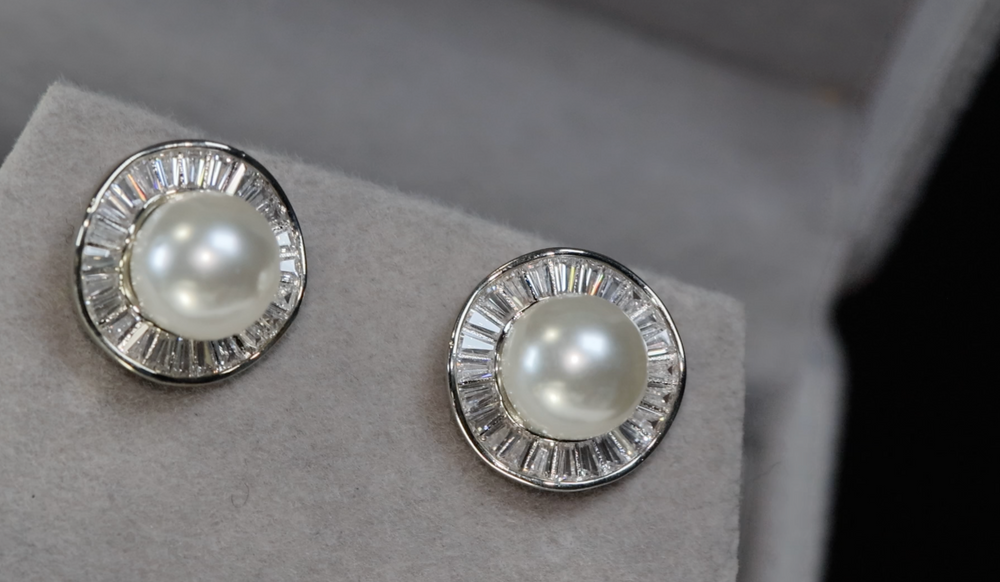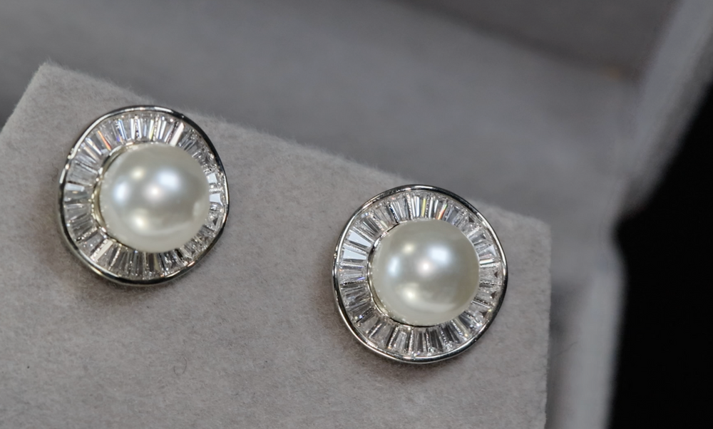 Pearl Ear Studs | Diamond Pearl Ear Studs | Womens Pearl Earrings