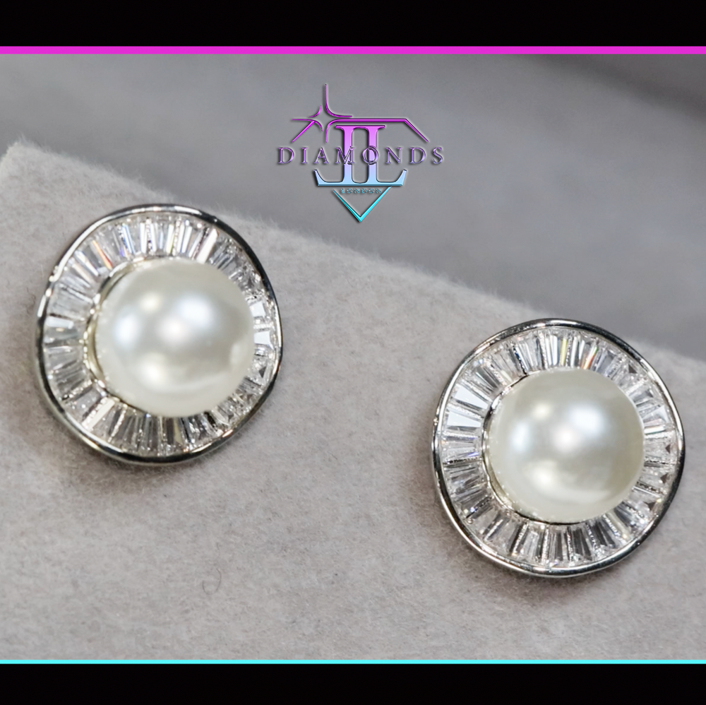 Pearl Baguette Ear Studs | Womens Diamond Earrings | Pearl Ear Studs
