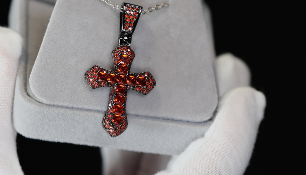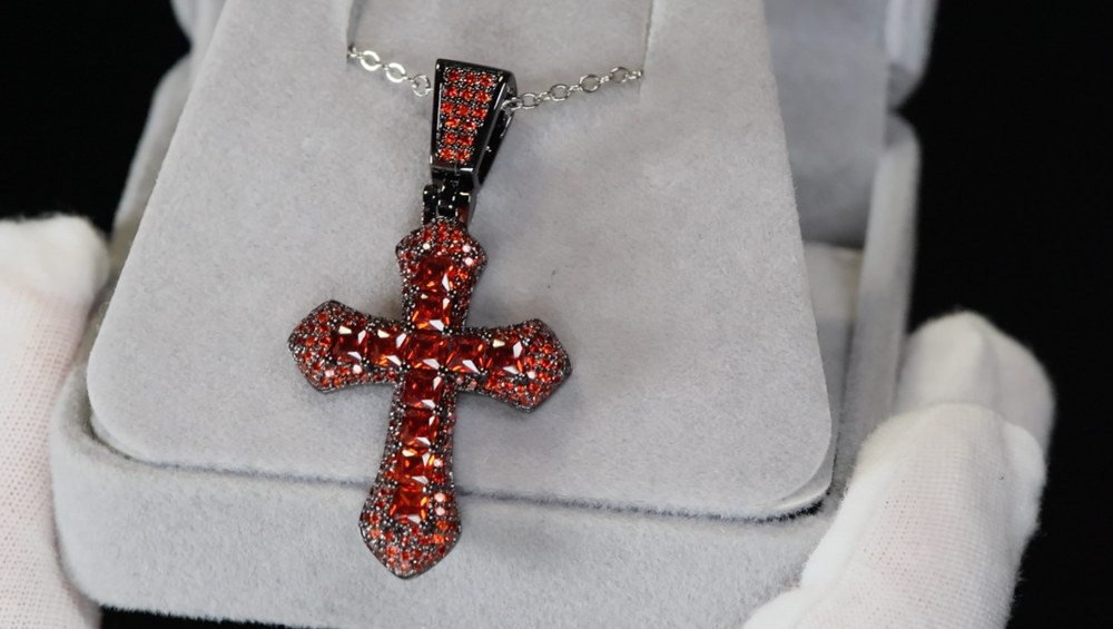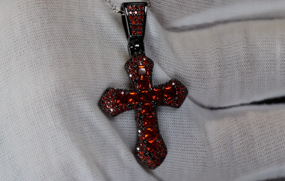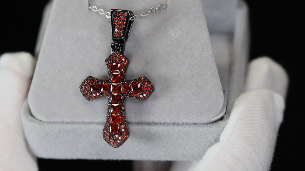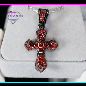 Black Cross Pendant | Princess Cut Diamond Cross Pendant | Red Diamond Pendant