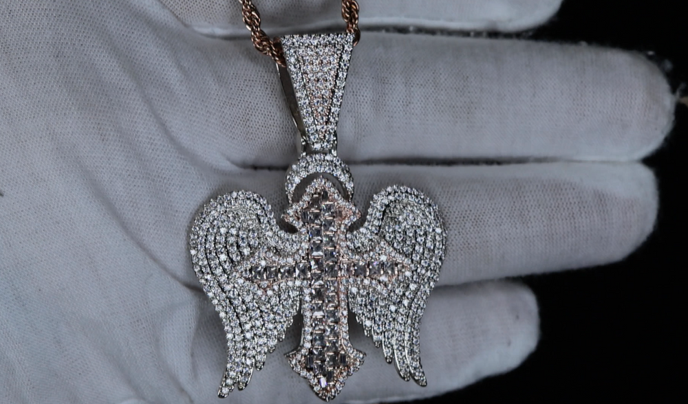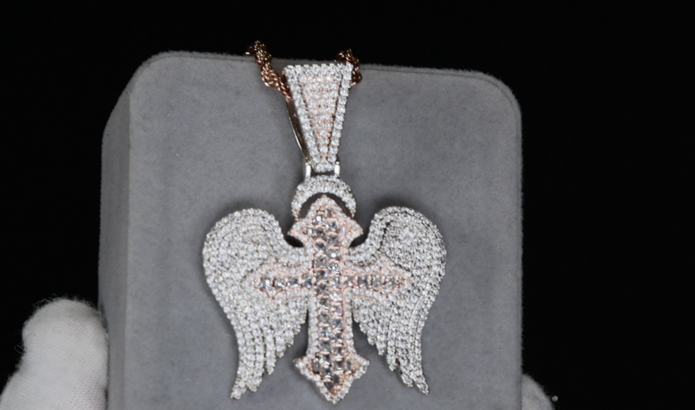 Rose Gold Diamond Cross Pendant | Iced Out Cross Pendant | Big Rose Gold Cross Pendant
