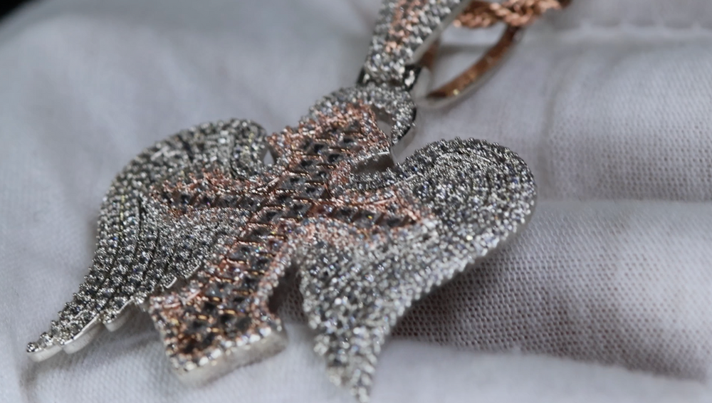 Iced Out Cross Pendant | Rose Gold Cross Pendant | Big Rose Gold Cross