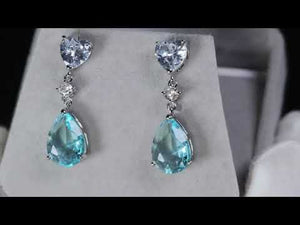 Pear Cut Diamond Earrings | Blue Teardrop Diamond Earrings | Silver Blue Diamond Earrings