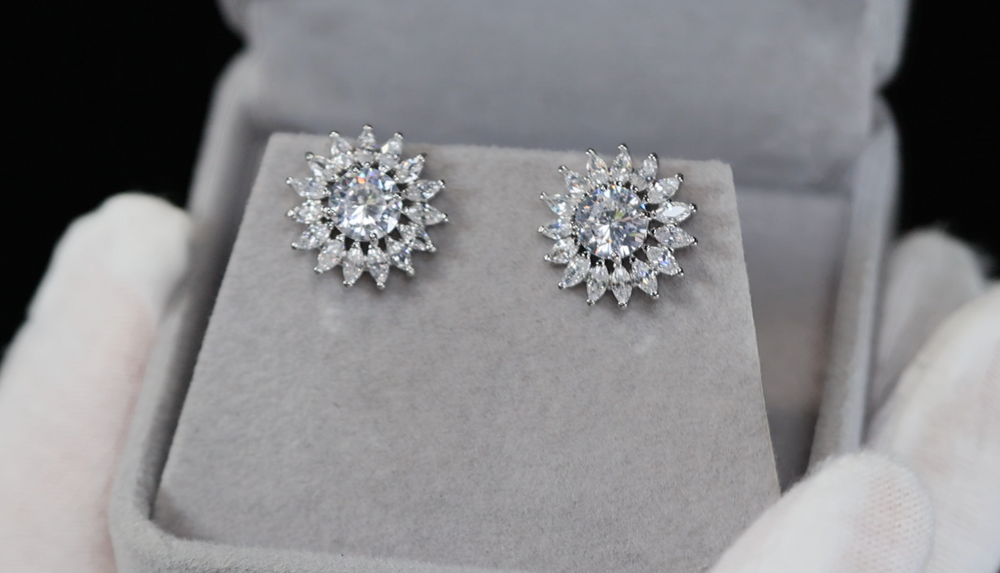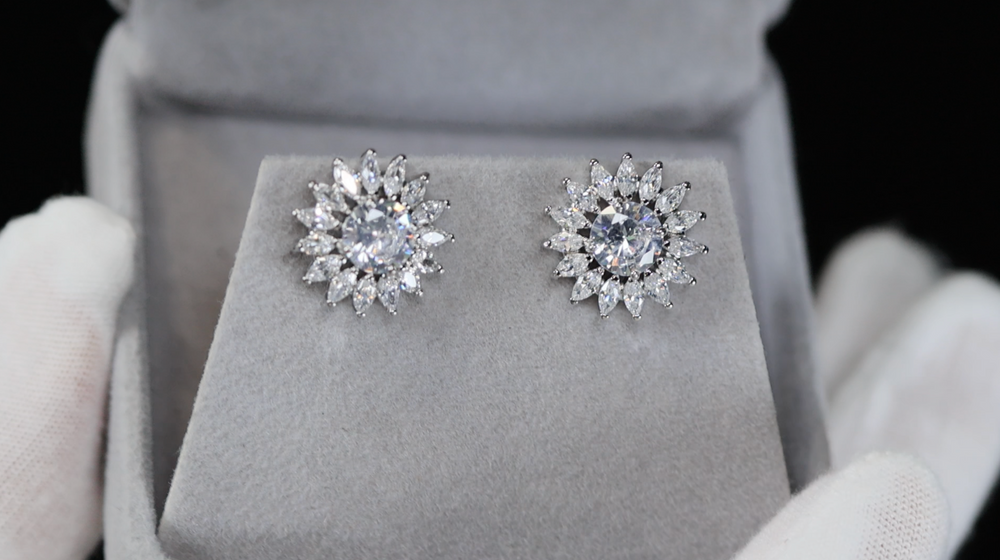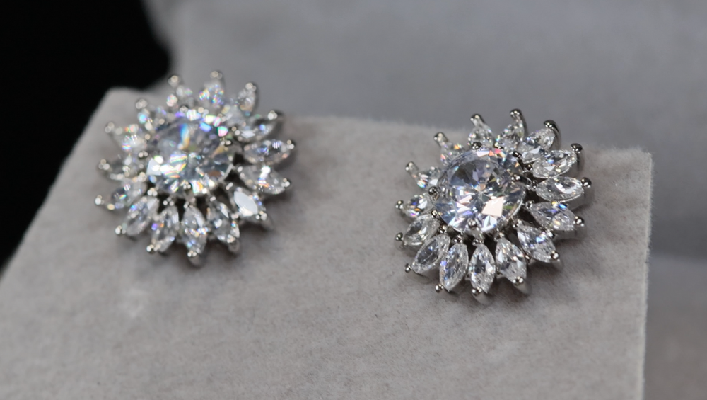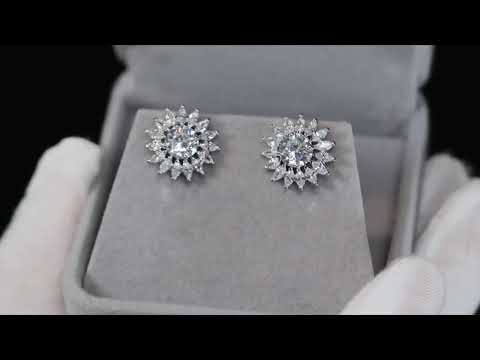 Cluster Diamond Earrings | Womens Silver Diamond Ear Studs | Snowflake Diamond Ear Studs