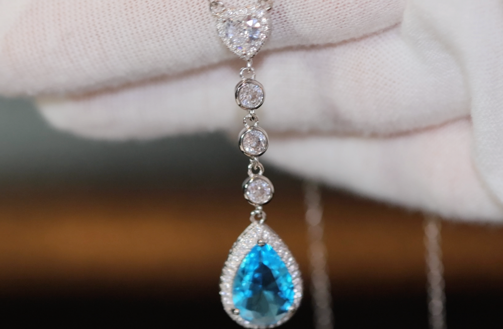 Blue Diamond Pendant | Blue Diamond Necklace | Teardrop Pendant