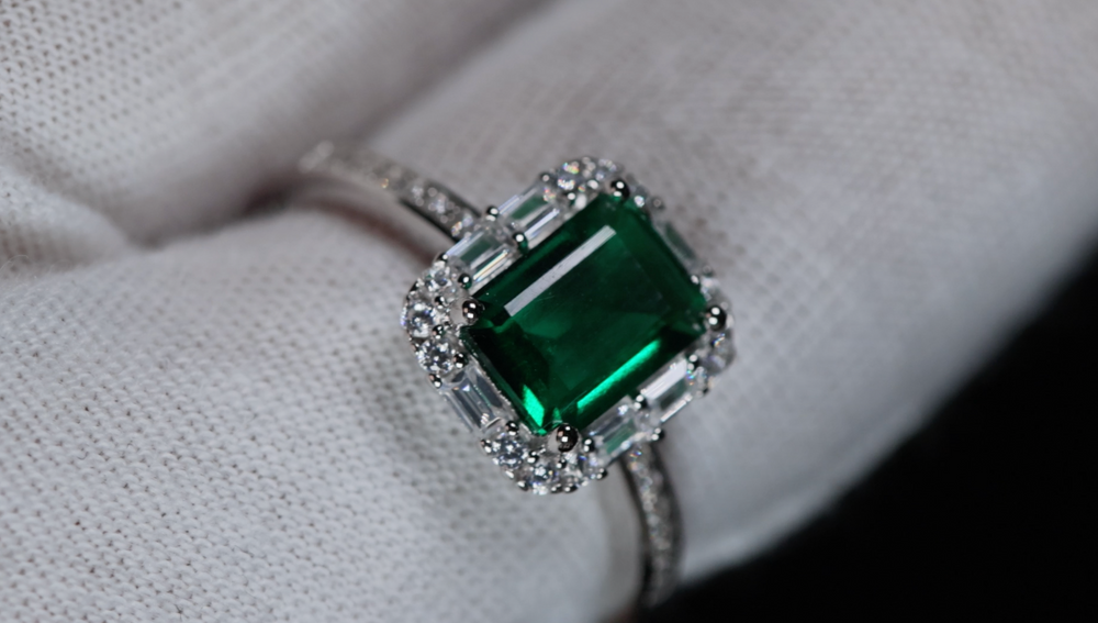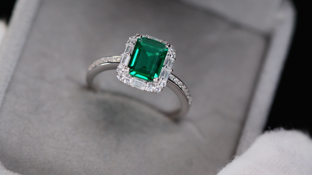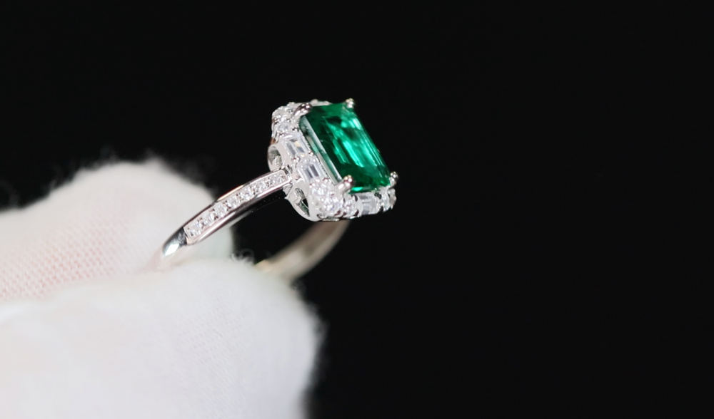 Green Lab Grown Emerald Ring | Green Lab Grown Diamond Ring