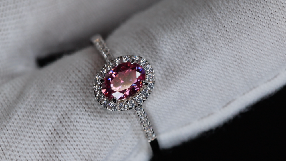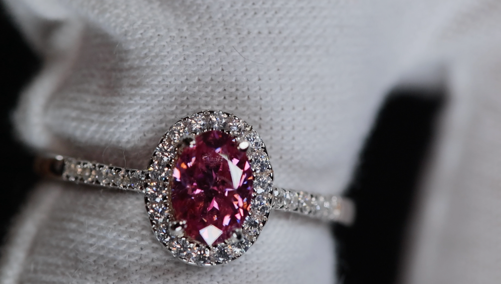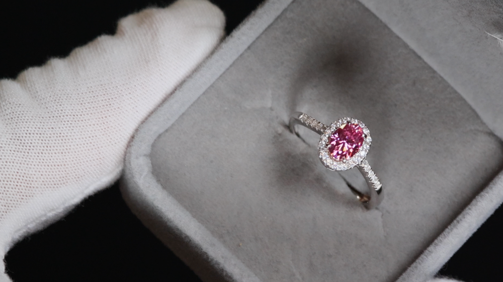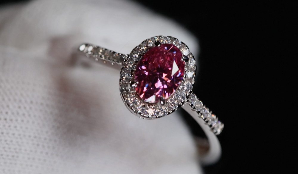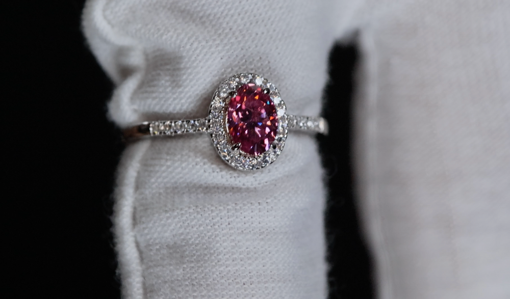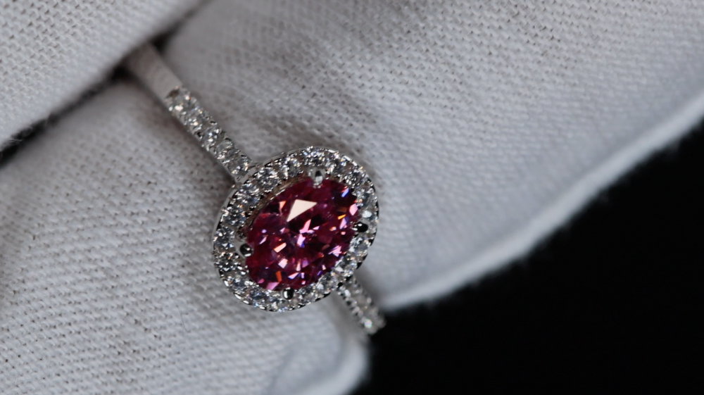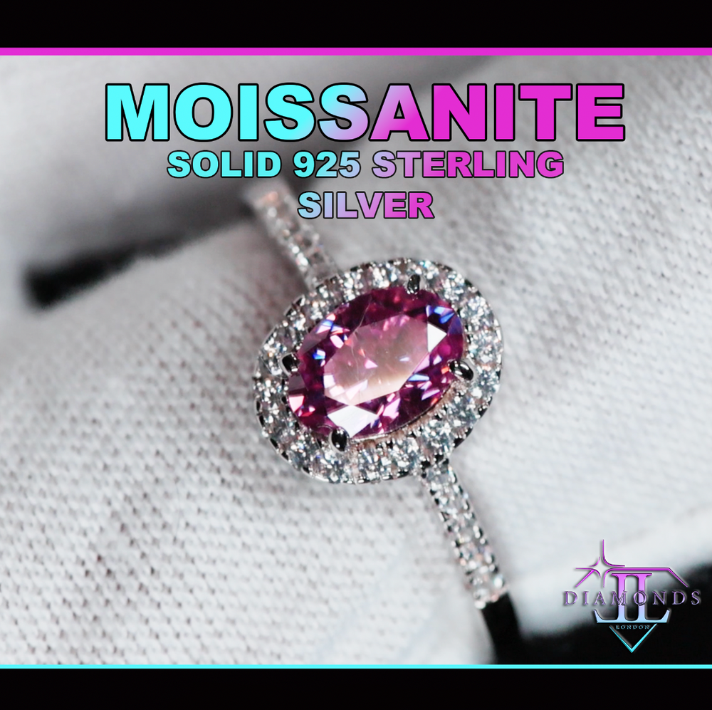Womens Pink Moissanite Diamond Ring | Pink Oval Cut Moissanite Diamond Ring