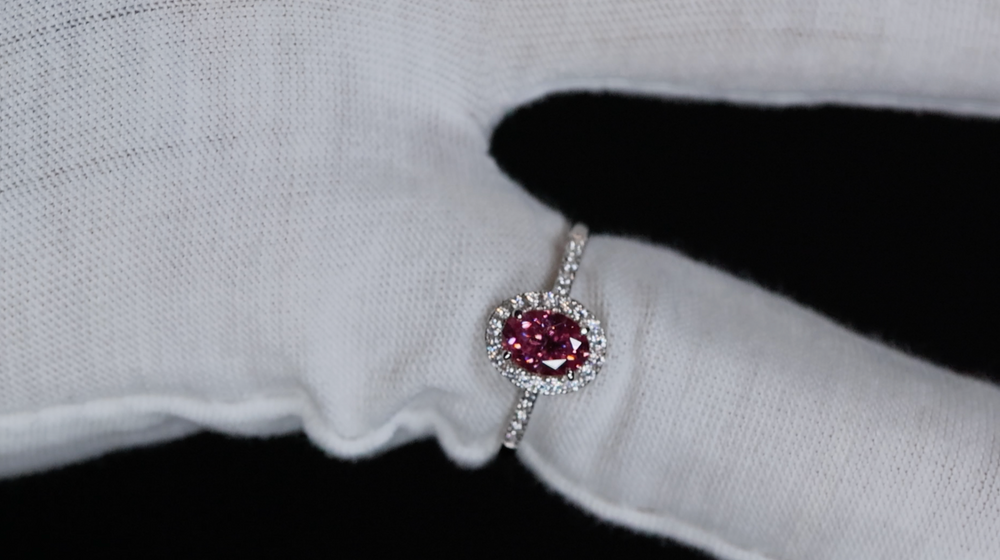 Pink Diamond Ring | Pink Moissanite Ring | Pink Oval Diamond Ring