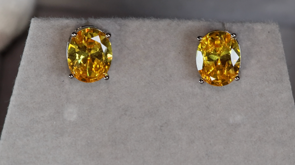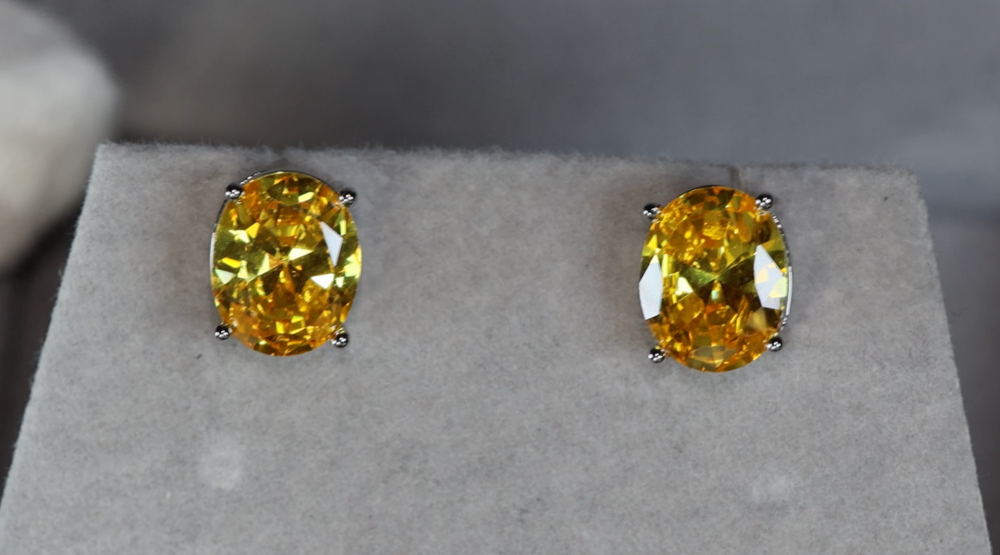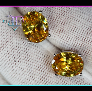 Yellow Oval Cut Diamond Ear Studs | Womens Yellow Diamond Ear Studs